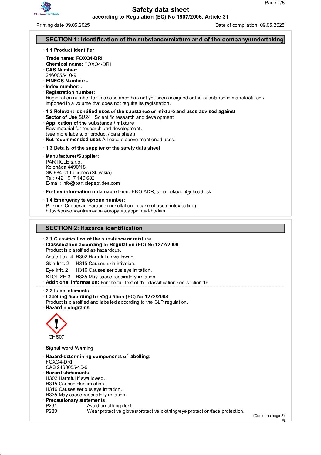| Peptide | FOXO4-DRI (Proxofim) |