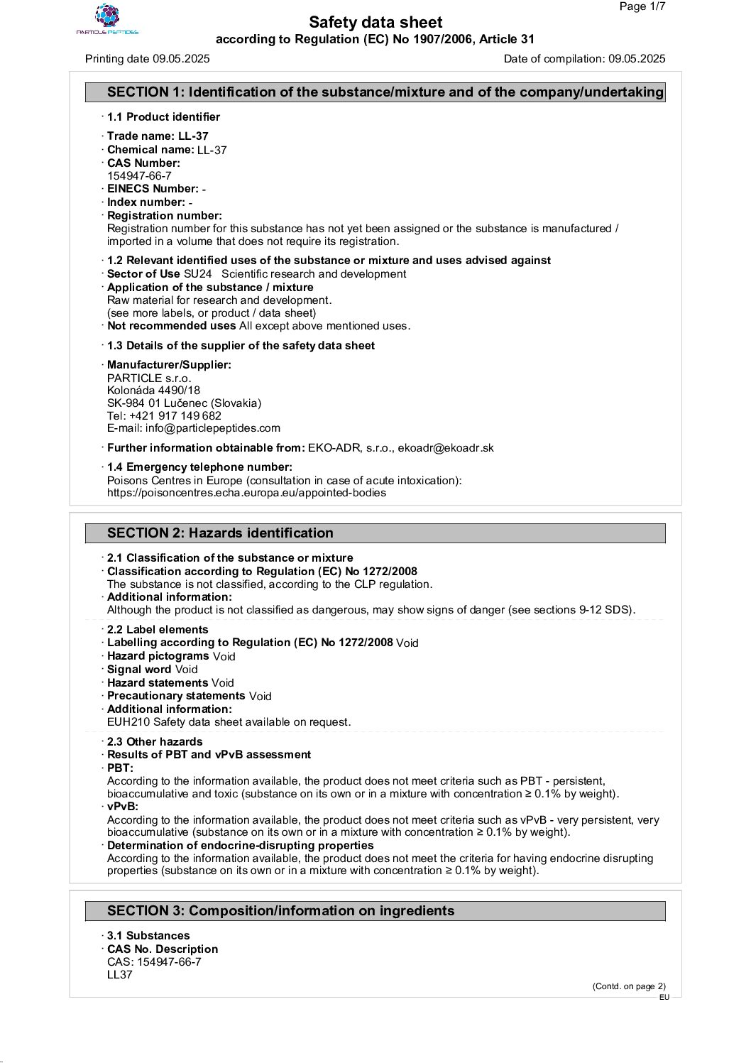Is LL-37 peptide for sale for human use? LL-37 peptide for sale through this platform is supplied exclusively for in-vitro scientific research. It is not approved for human administration, therapeutic use or clinical application. All research involving this compound should comply with applicable institutional and regulatory requirements.